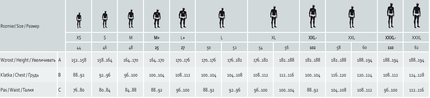 - trzy kieszenie na klatce piersiowej, w tym dwie na suwak i jedna na telefon, jedna wąska kieszonka na przybory np. długopis oraz dwie dolne