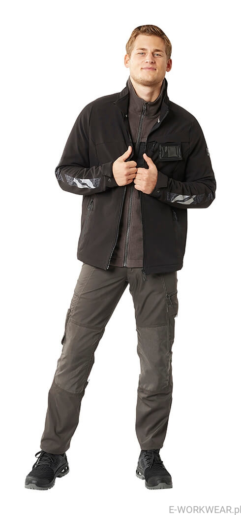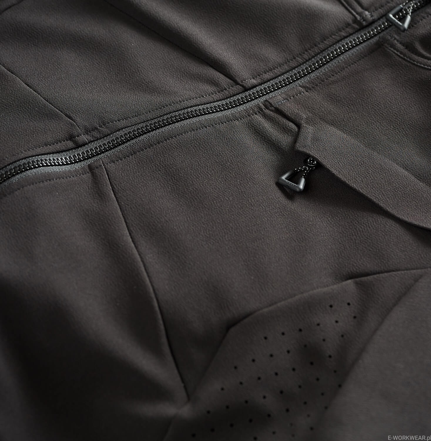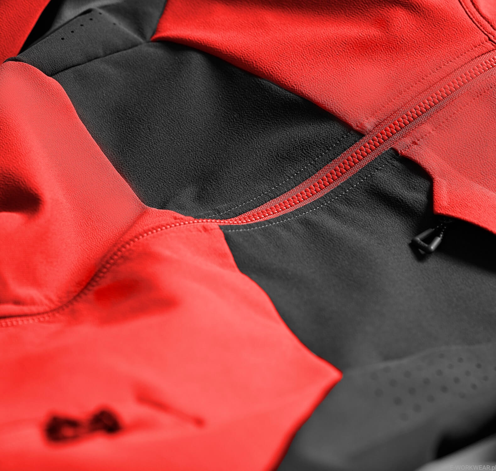 Ma wodoodporne wykończenie. Zapięcie na zamek błyskawiczny i wewnętrzna klapka sztormowa. 4 kierunkowy materiał strecz o niskiej wadze i dobrej wytrzymałości. Kieszeń na piersi zapinana na zamek błyskawiczny. Odczepiany uchwyt na identyfikator. Przednie kieszenie zapinane na zamek błyskawiczny. Regulacja na zatrzaski przy mankietach i w pasie. Z nadrukiem i odblaskami.