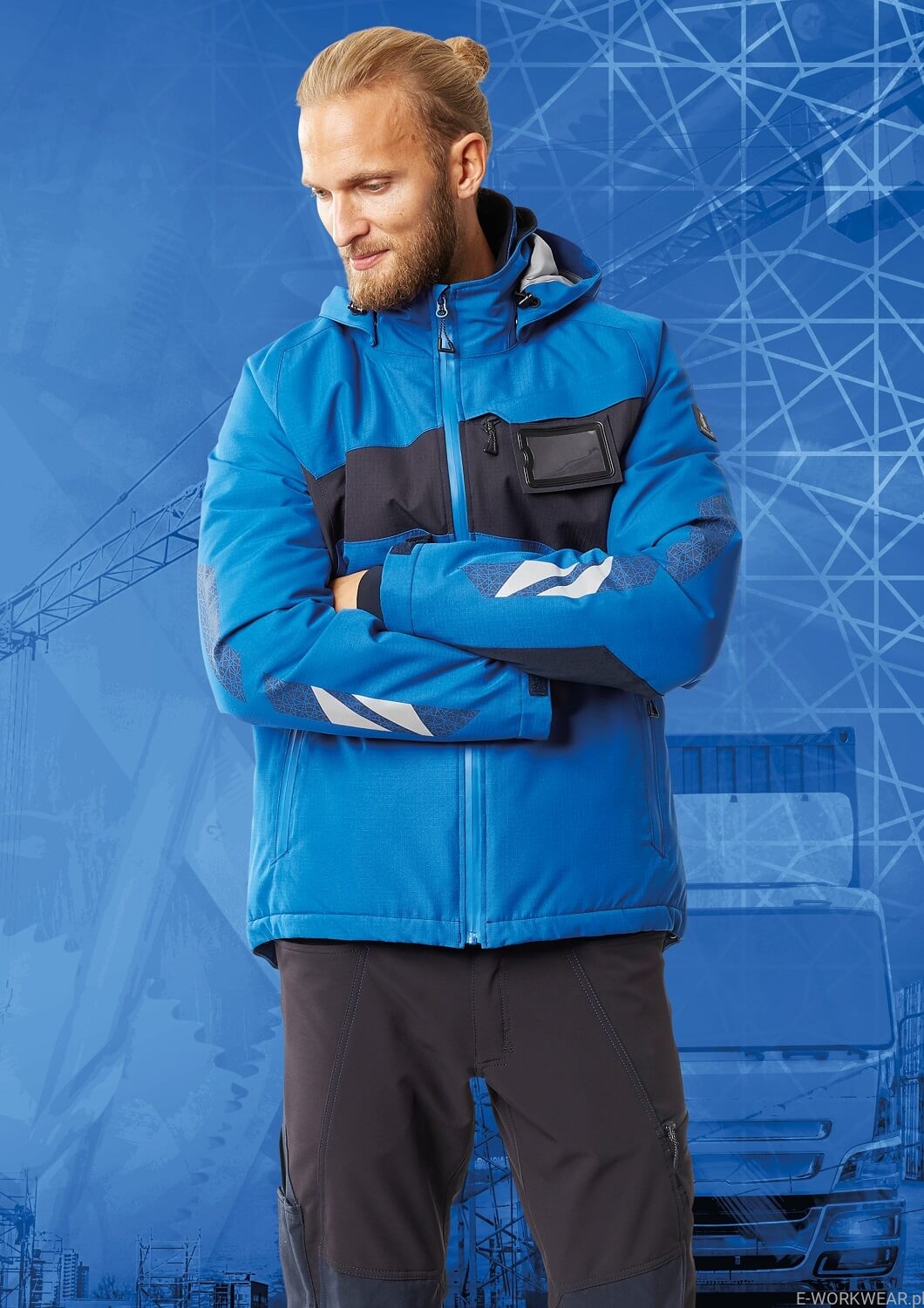 Oddychający, wiatro- i wodoszczelny. Podklejane szwy. CLIMASCOT® Lightweight Insulation. Odpinany kaptur z podszewką, z regulacją na gumkę. Zapięcie na zamek błyskawiczny i wewnętrzna klapka sztormowa. Wewnętrzna kieszeń zapinana na zamek błyskawiczny. Odczepiany uchwyt na identyfikator. Kieszeń na piersi zapinana na zamek błyskawiczny. Przednie kieszenie zapinane na zamek błyskawiczny. Regulacja na gumki w pasie. Rękawy ze wzmocnieniem CORDURA®. Ściągacz (ukryty w klapce sztormowej) w mankietach. Wewnętrzny zamek błyskawiczny w dolnej części pleców stosowany jest przy umieszczaniu haftu lub nadruku. Z nadrukiem i odblaskami.