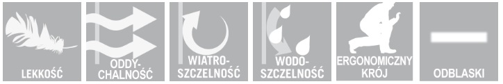 - Oddychający, wiatro- i wodoodszczelny produkt z klejonymi szwami.