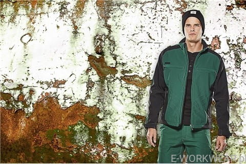 Dwukolorowy. Właściwości oddychające, wiatro- i wodoodporne. Polar po wewnętrznej stronie. Zapięcie na zamek błyskawiczny i wewnętrzna klapka sztormowa. Przedłużenie pleców. Kieszenie na piersi, zapinane na zamek błyskawiczny. Zawieszka na klucze. Przednie kieszenie zapinane na zamek błyskawiczny. Wewnętrzne kieszenie. Dopasowany krój rękawów. Kieszeń na długopis. Zapięcie na rzepy przy mankietach. Regulacja na gumki w pasie. Kontrastowe szwy. Odblaski.