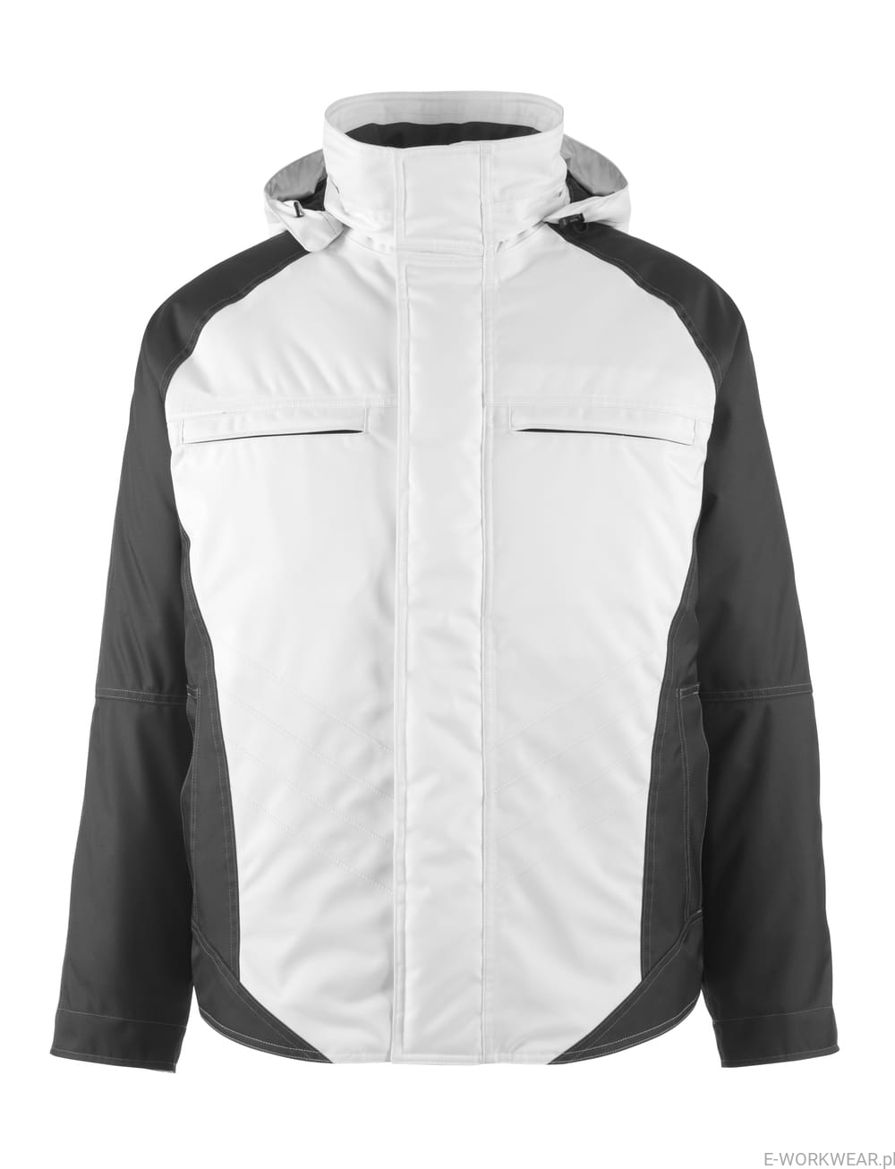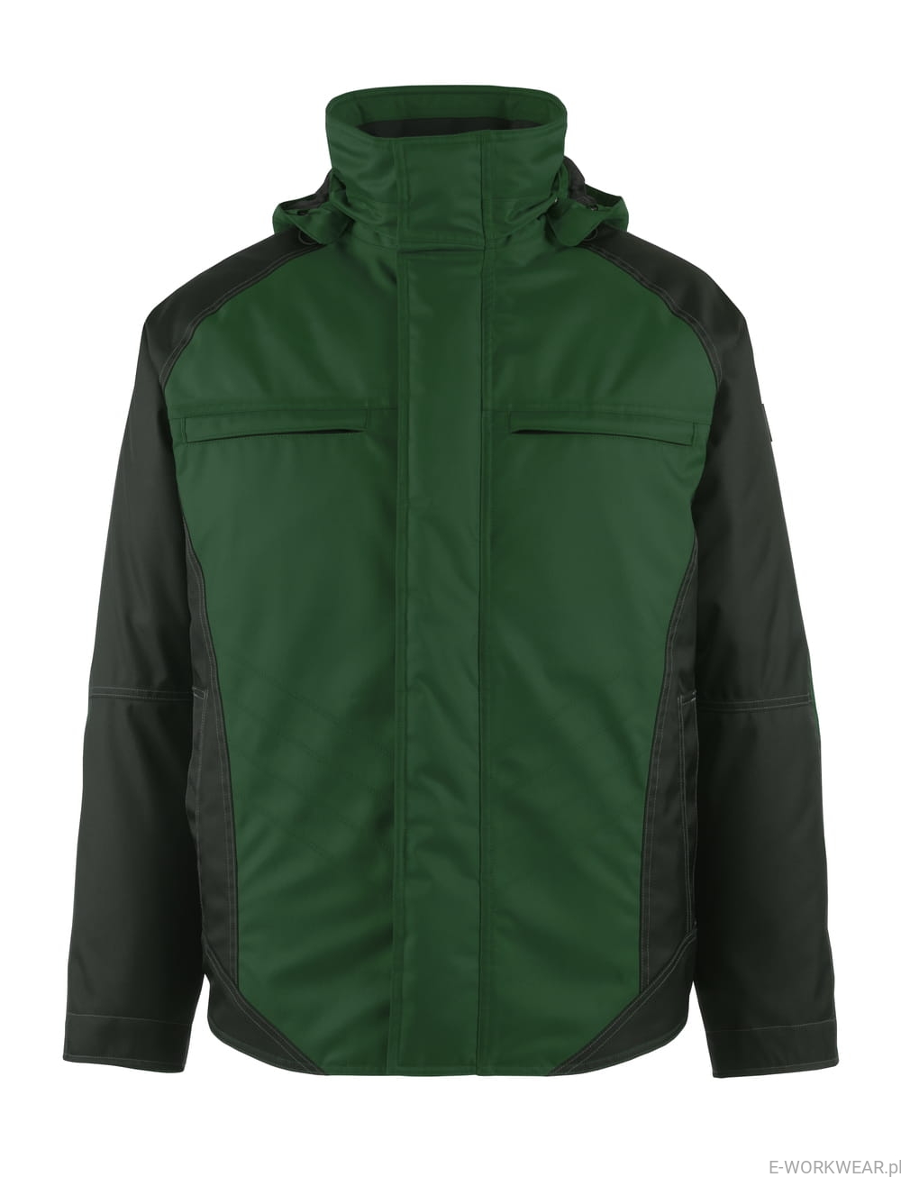 Dwukolorowy. Oddychający, wiatro- i wodoszczelny. Podklejane szwy. Odpinany kaptur z podszewką, z regulacją na gumkę. Pikowana podszewka i pikowany polar. Zapięcie na zamek błyskawiczny, klapka sztormowa zapinana na zatrzaski. Kieszeń pod klapką sztormową, zapinana na zamek błyskawiczny. Kieszenie na piersi, zapinane na zamek błyskawiczny. Łatwy dostęp do kieszeni na telefon wbudowanej w kieszeń na piersi. Zawieszka na klucze. Ergonomiczny kształt rękawów zapewnia dużą swobodę ruchów. Przednie kieszenie. Wewnętrzna kieszeń zapinana na zamek błyskawiczny. Ściągacz (ukryty w klapce sztormowej) w mankietach. Wewnętrzna regulacja na wysokości bioder przy pomocy sznurka. Wewnętrzny zamek błyskawiczny w dolnej części pleców stosowany jest przy umieszczaniu haftu lub nadruku. Odblaski.