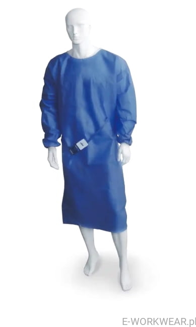 Sterylny fartuch chirurgiczny wykonany z włókniny typu SMMMS, ciemnoniebieski.