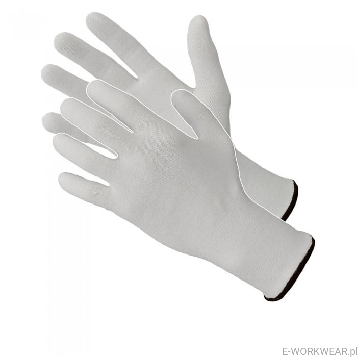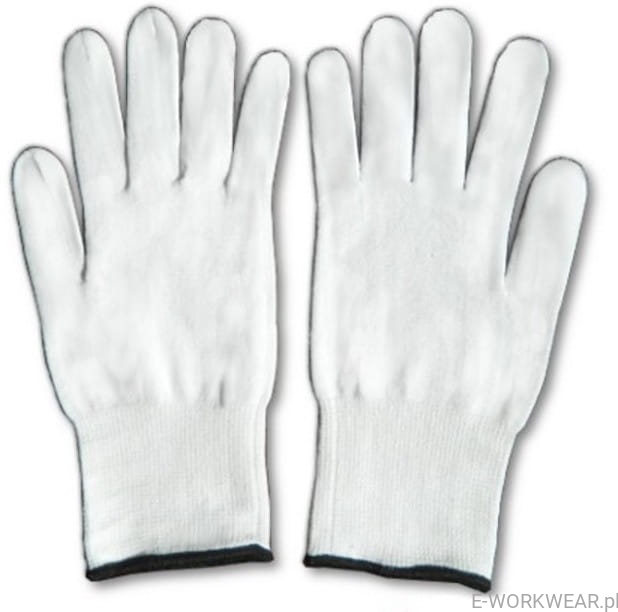 Rękawice bezszwowe, niepylące wykonane z elastycznej dzianiny 100% bawełna + spandex w kolorze białym ze ściągaczem.
