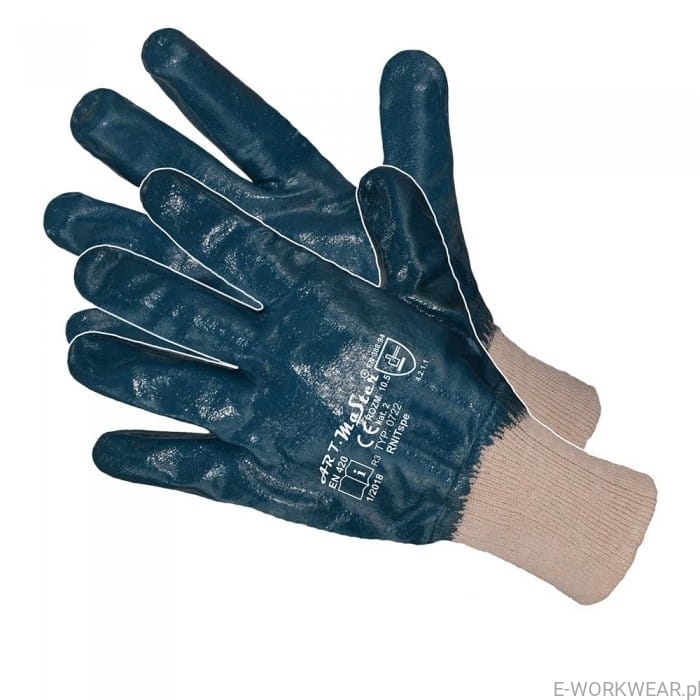 - część chwytna i część wierzchnia oblewane powłoką z nitrylu w kolorze granatowym
