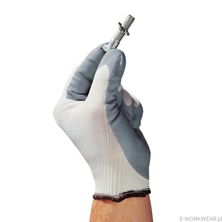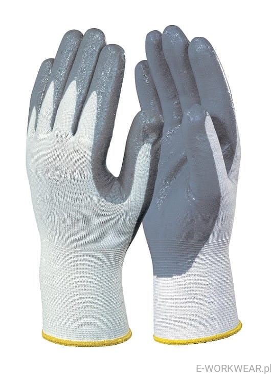 Rękawice ochronne wykonane z poliestru, powlekane szarym nitrylem.