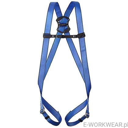 Szelki wyposażone w tylną klamrę zaczepową; Regulacja pasów udowych i pasa piersiowego.